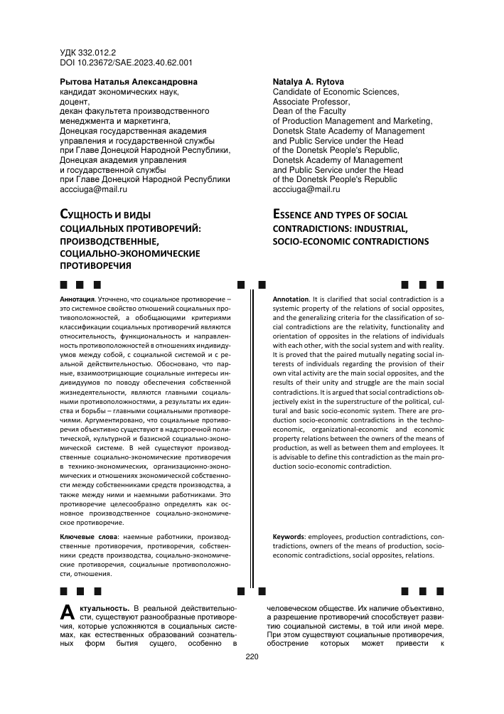 Экономика и социальные противоречия