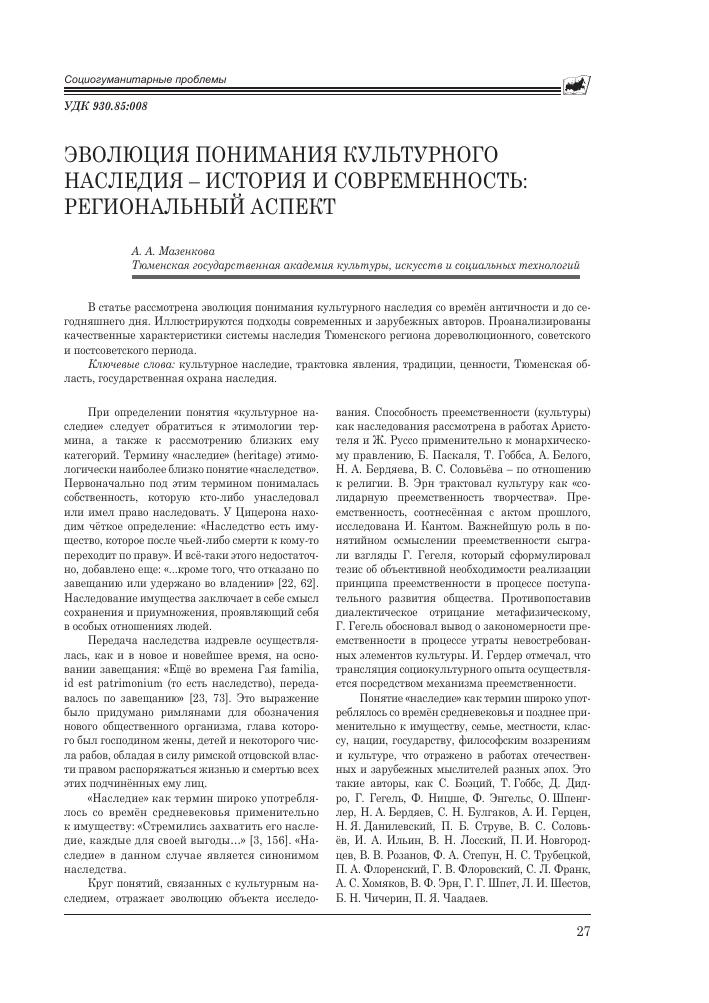 История и культурное наследие